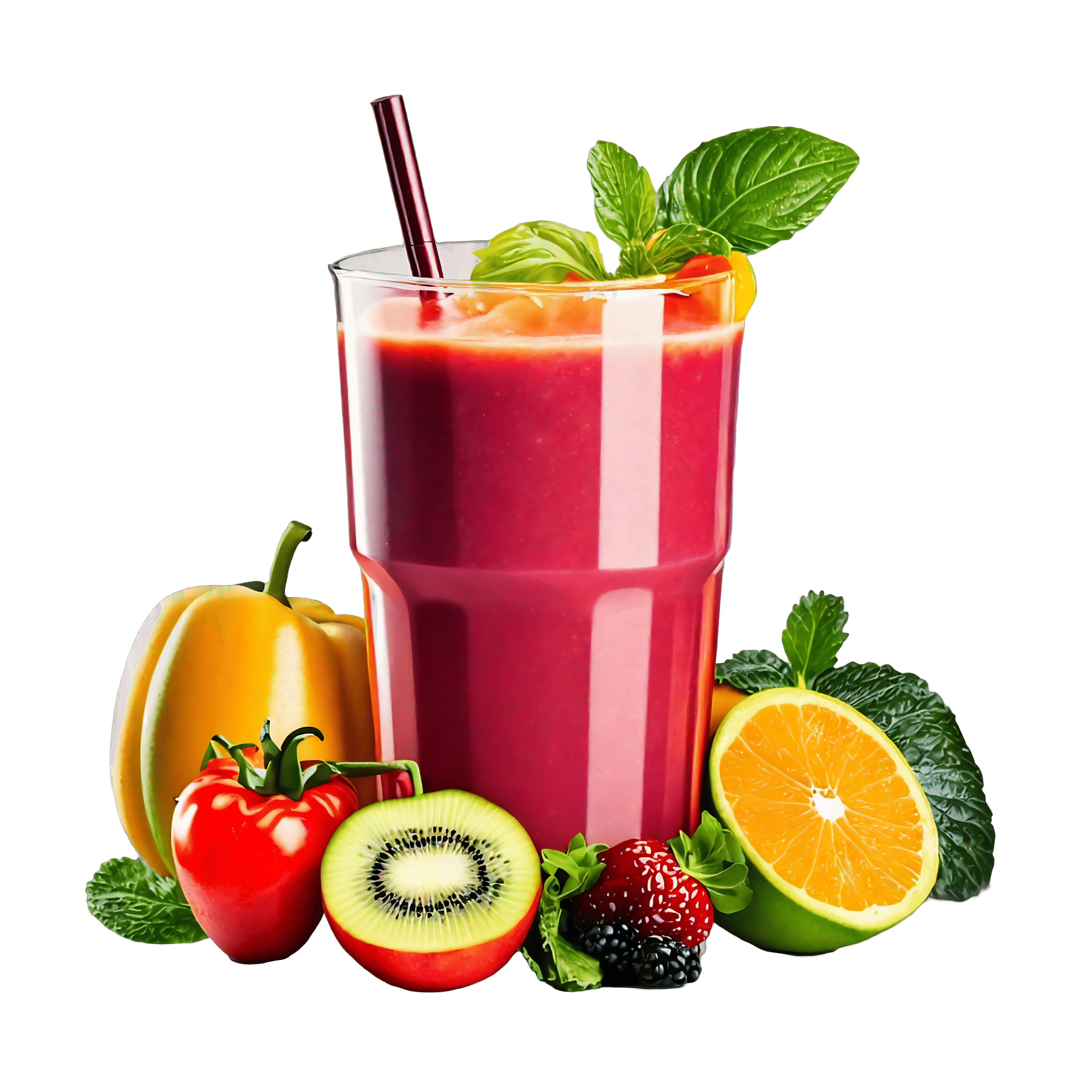 A bright blend of strawberries, lemon, tomato, and bell peppers, offering refreshing flavor and a boost of vitamin C, antioxidants, and natural electrolytes to help energize, hydrate, and support overall wellness.